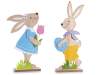 Pareja de conejitos de Pascua realizados en madera y tela de colores para colocar sobre una mesa