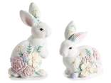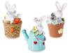 Conejitos de Pascua hechos de resina de colores para colocar en jarrones y regaderas.