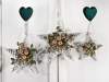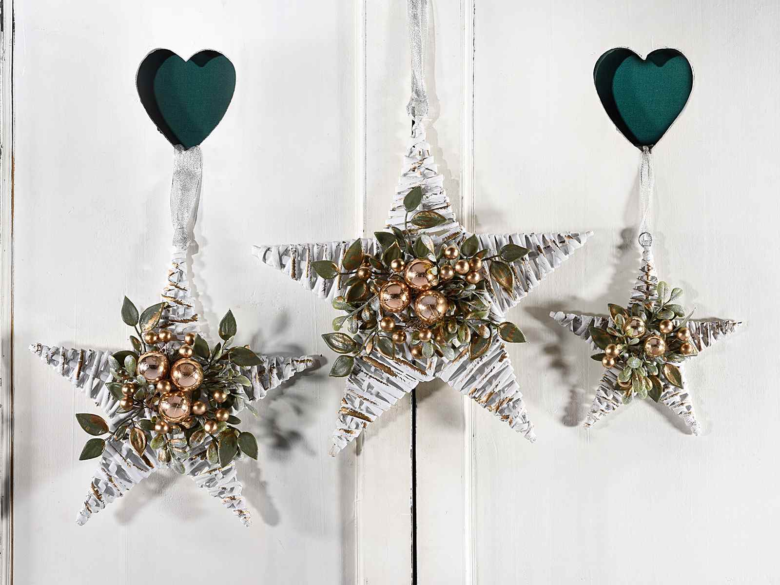 Adorno navideño en ratán con forma de estrella navideña con hojas y bolas doradas para colgar en set de 3 piezas
