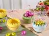 Contenedor cesta de Pascua en forma de medio huevo, en hormigón coloreado y asa de metal rosa con lazo