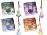 Ambientador colgante de yeso decorado con aceite perfumado en dispensador con tapón dorado, en caja de regalo.
