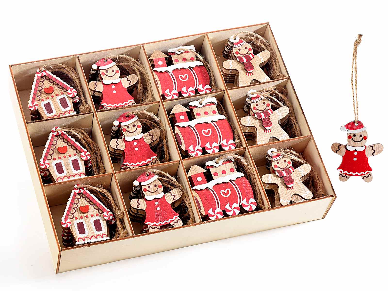 72 adornos colgantes de madera para árbol de Navidad con temática de hombre de jengibre