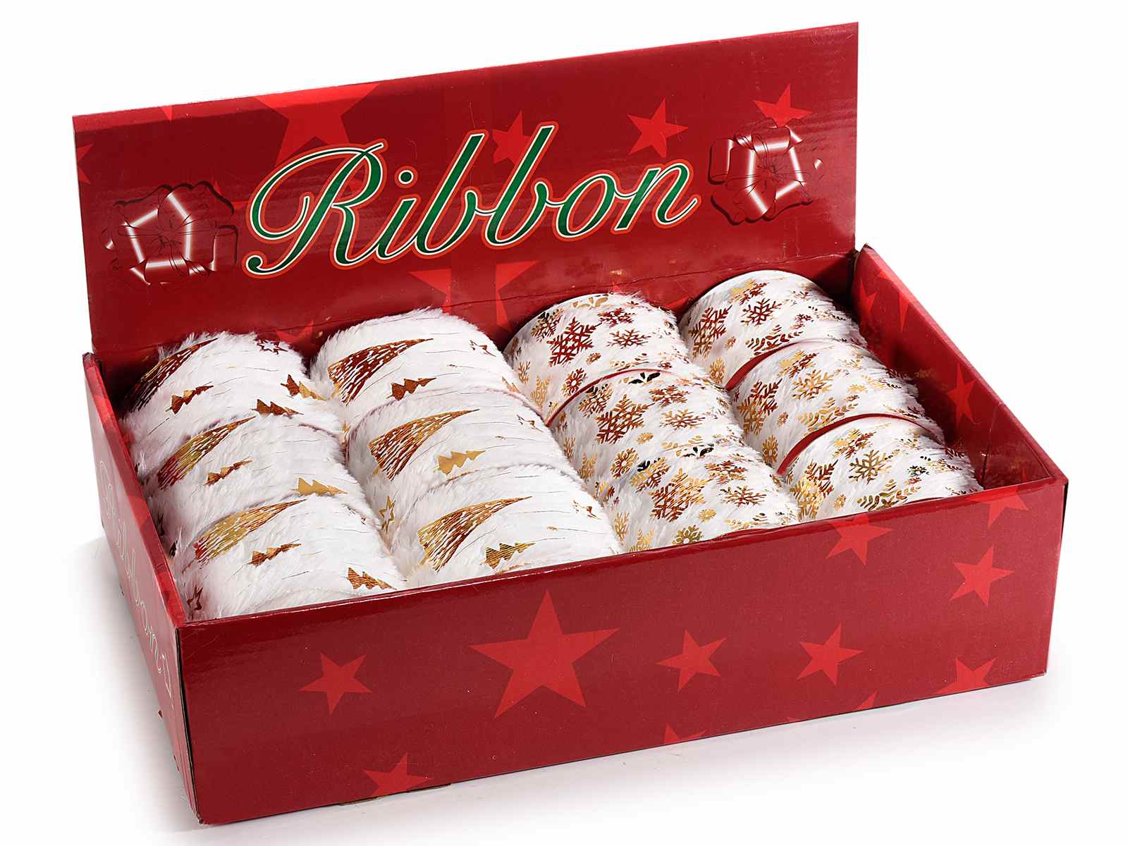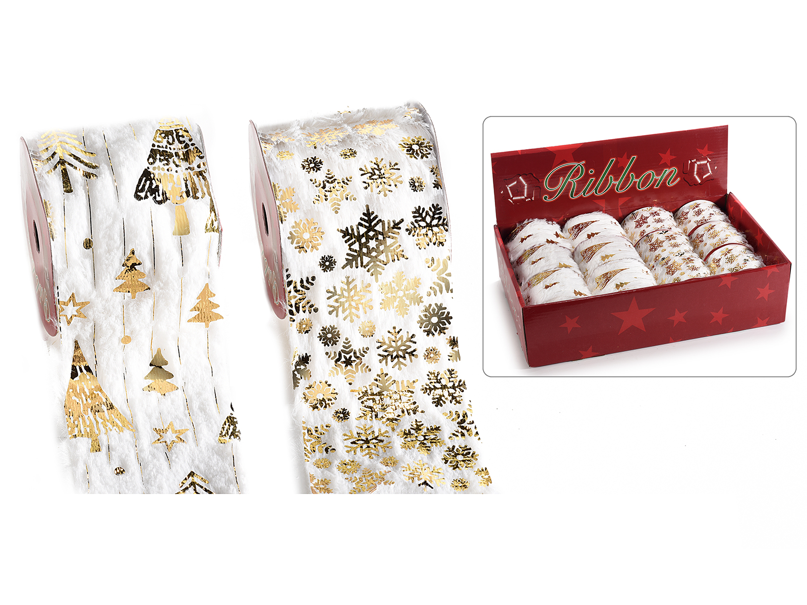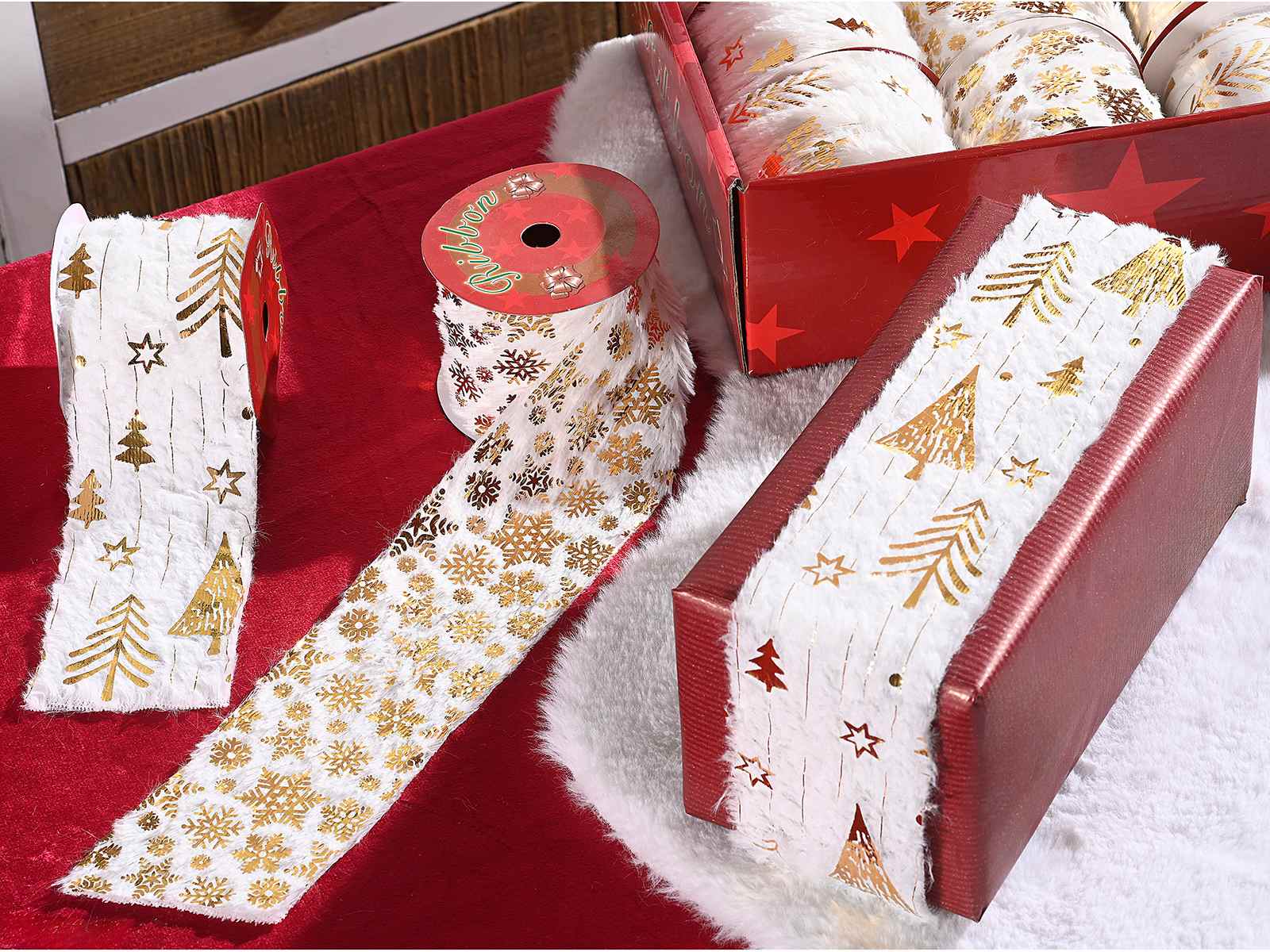 Cintas navideñas de ecopiel con copos de nieve y adornos para el árbol de Navidad en dorado brillante en expositor de 12 piezas