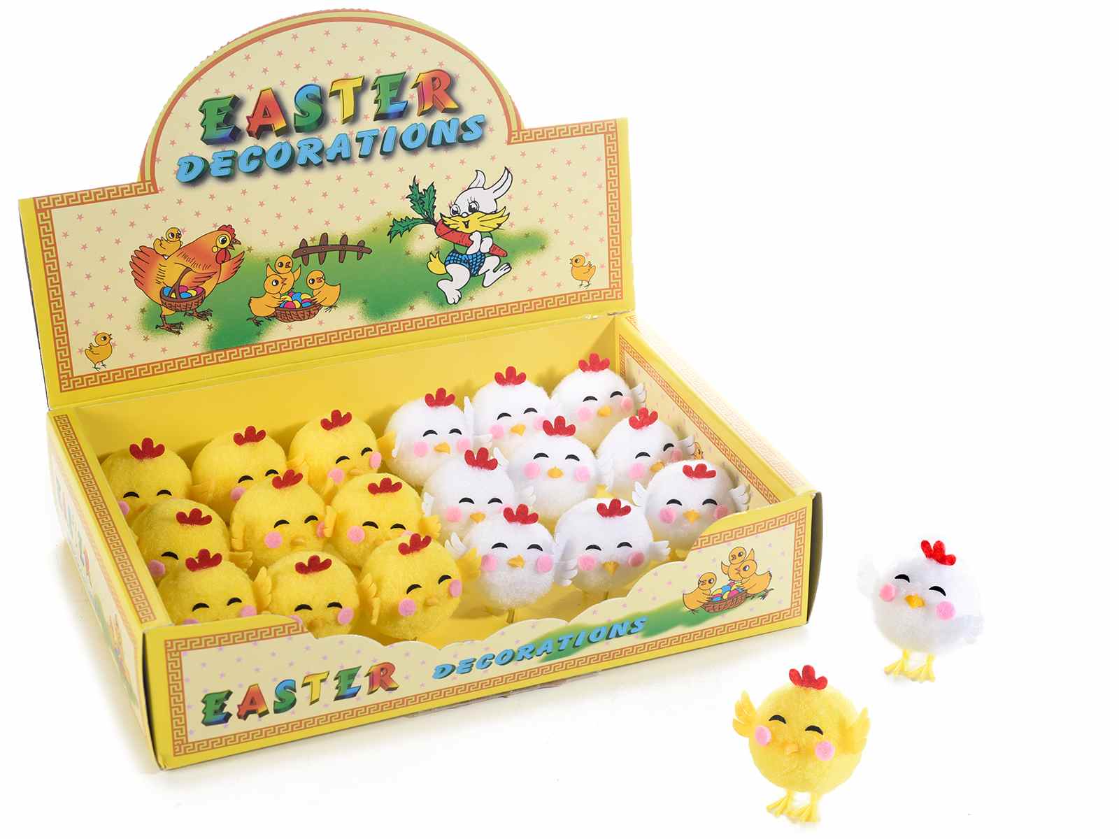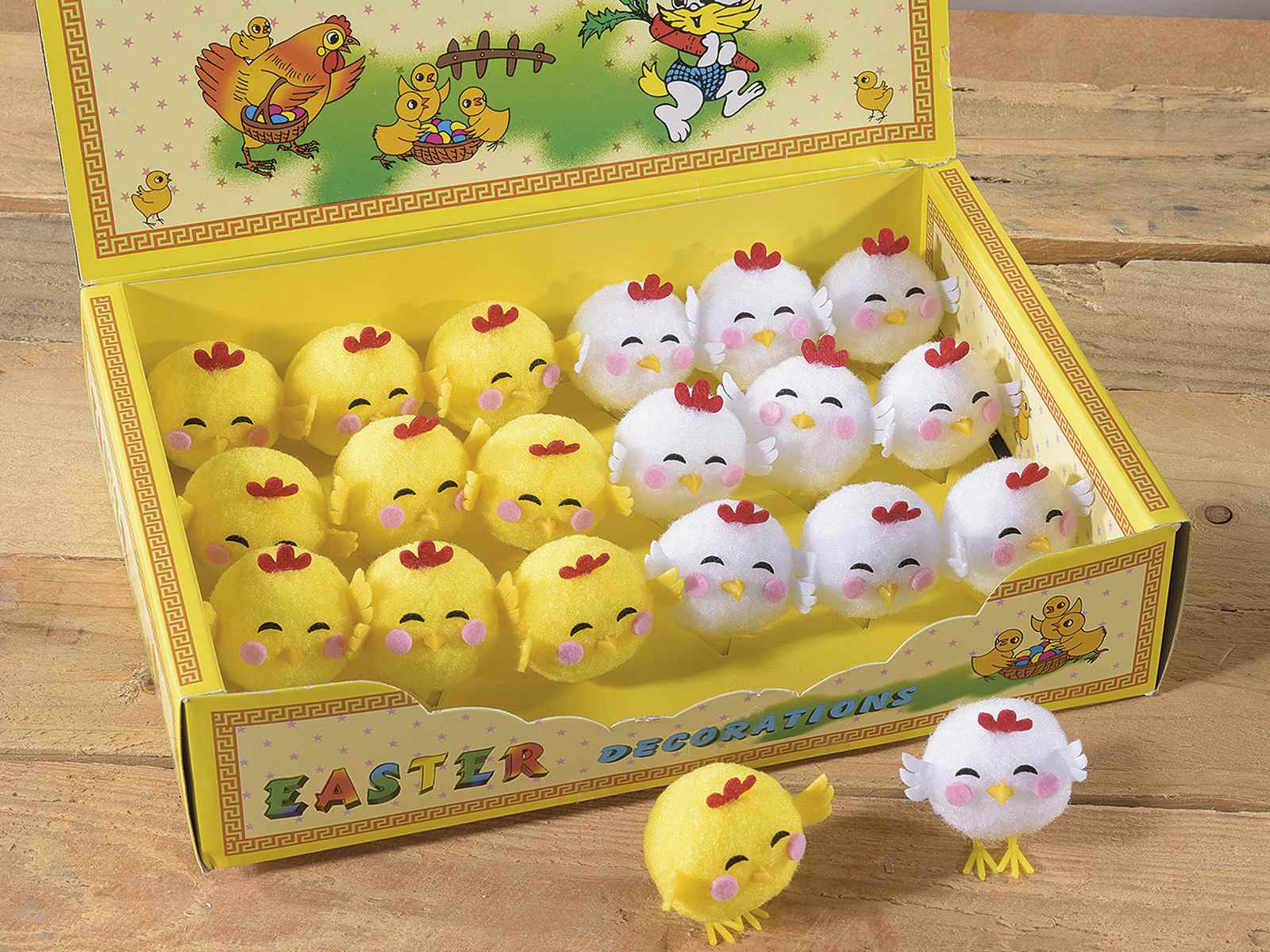 Gallinas y pollitos de Pascua decorativos en expositor de 18 piezas