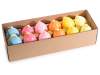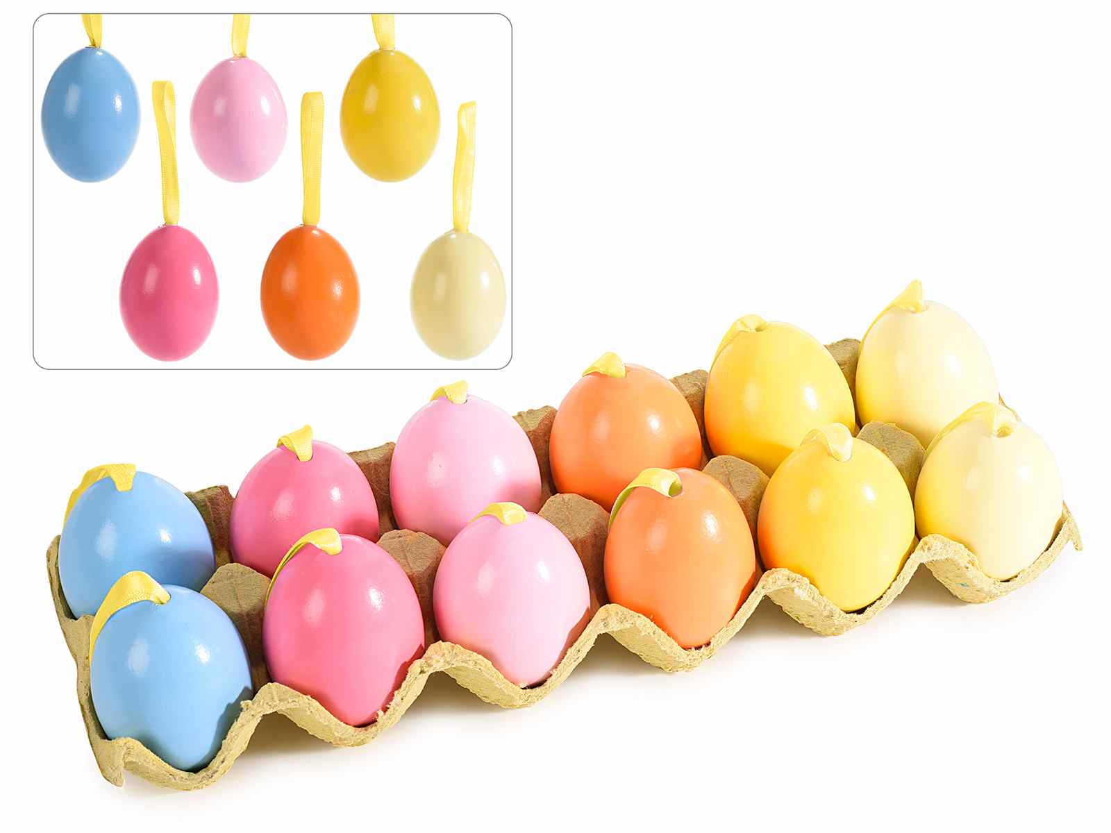 Huevos de colores con cinta para colgar en expositor de 12 piezas