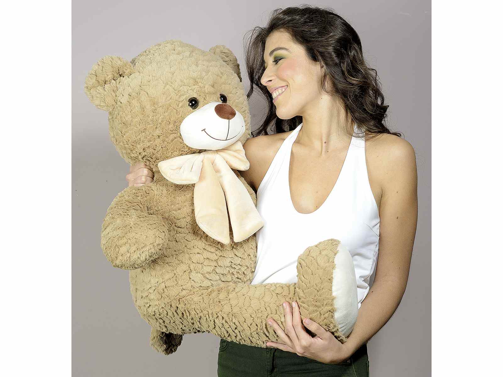 Gran oso de peluche con lazo de tela aterciopelada