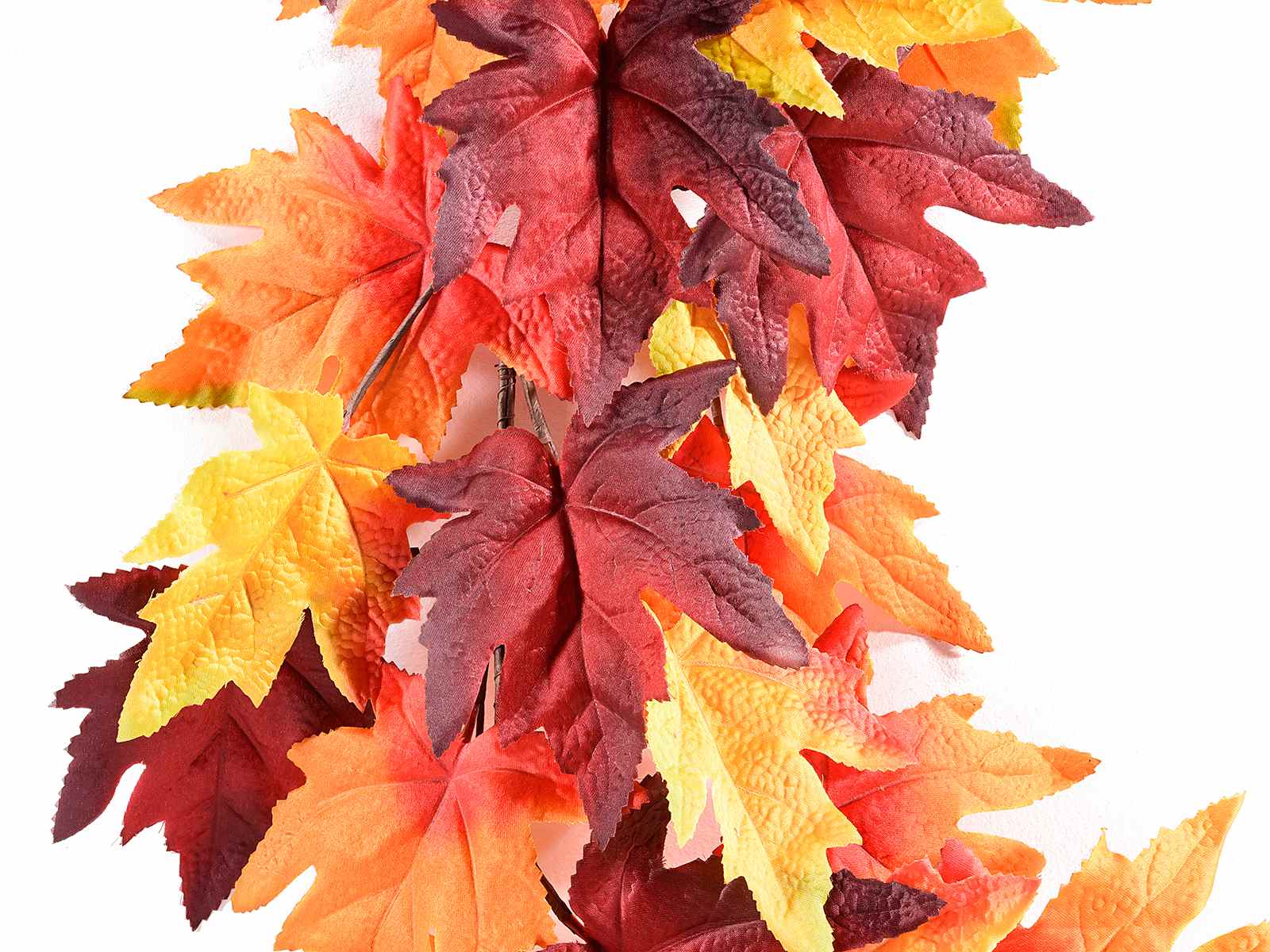 Guirnaldas de hojas artificiales de otoño, ideales para exposiciones temáticas y escaparates.