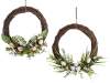 Coronas de Pascua de madera con huevos de colores para colgar.