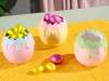 Recipientes con forma de huevo de Pascua en cerámica pastel con bordes de colores con efecto de relieve.