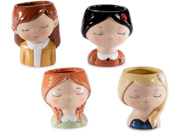 Jarrones decorativos / porta maquillaje con forma de cara de niña en cerámica de colores