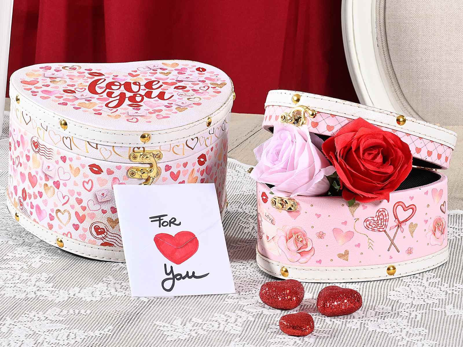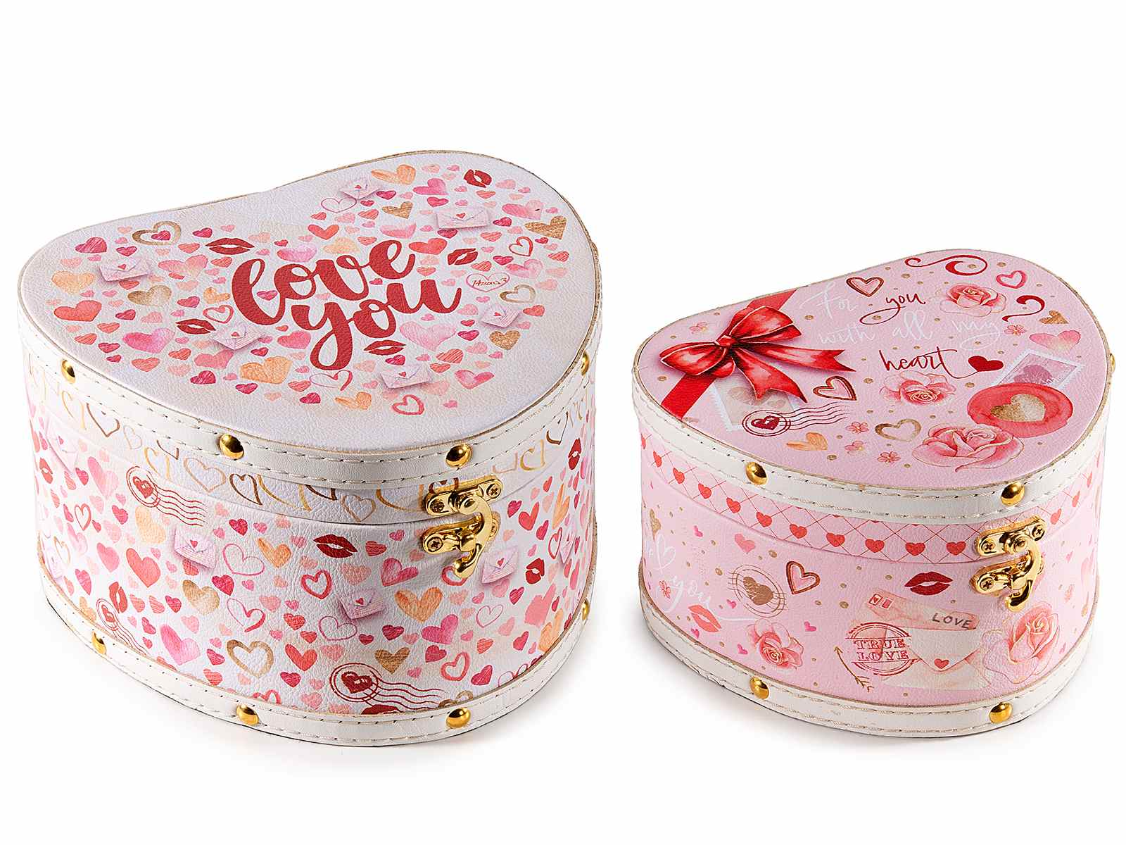 Cajas en forma de corazón con la inscripción "Te amo" en madera revestida con cierre de gancho en set de 2, para San Valentín