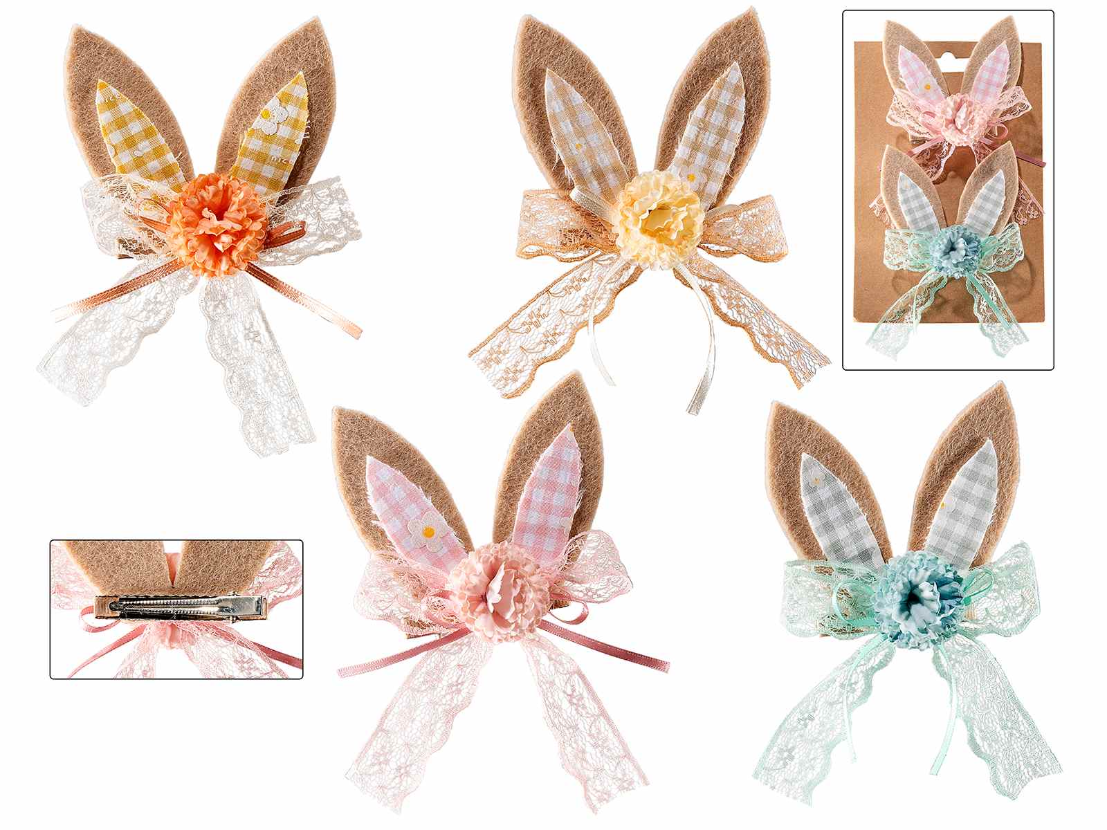 Juego de 2 orejas de conejo de tela con pinzas metálicas