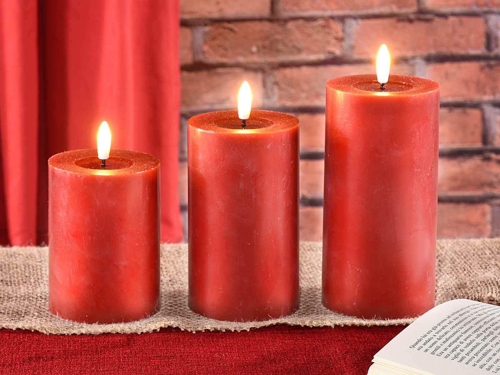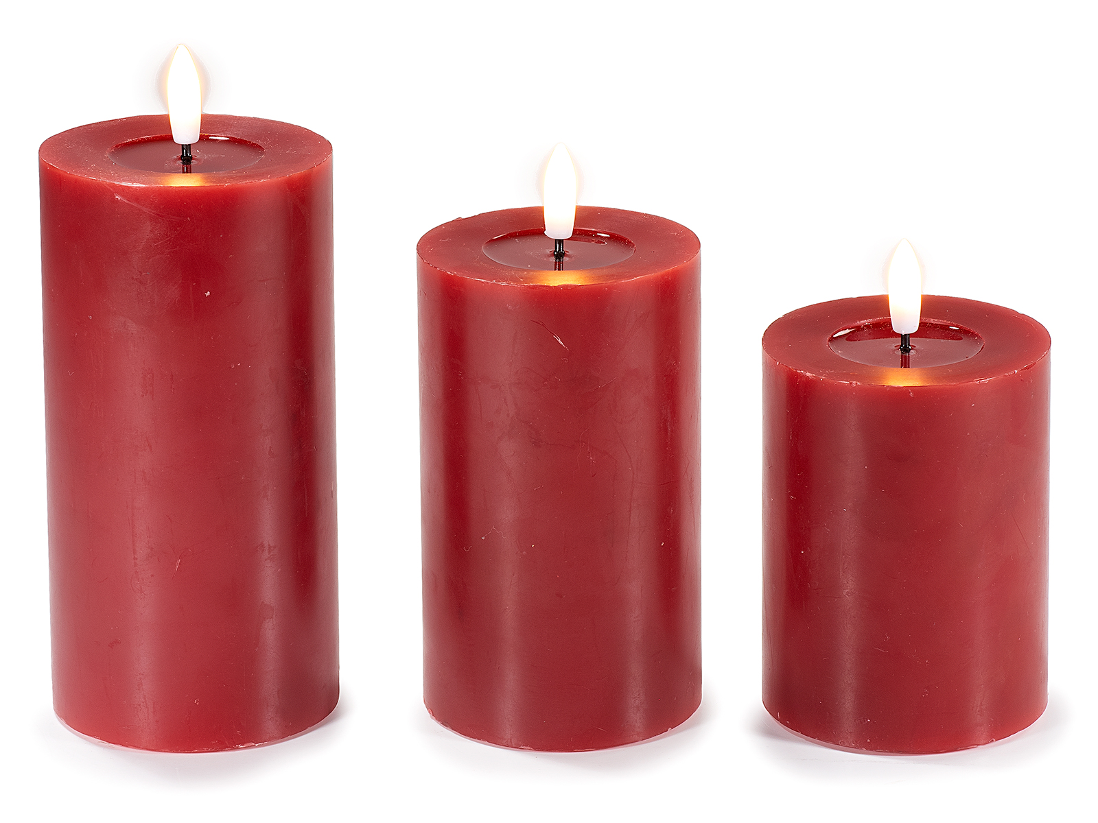 Juego de 3 velas de cera electrónicas con llama LED fija