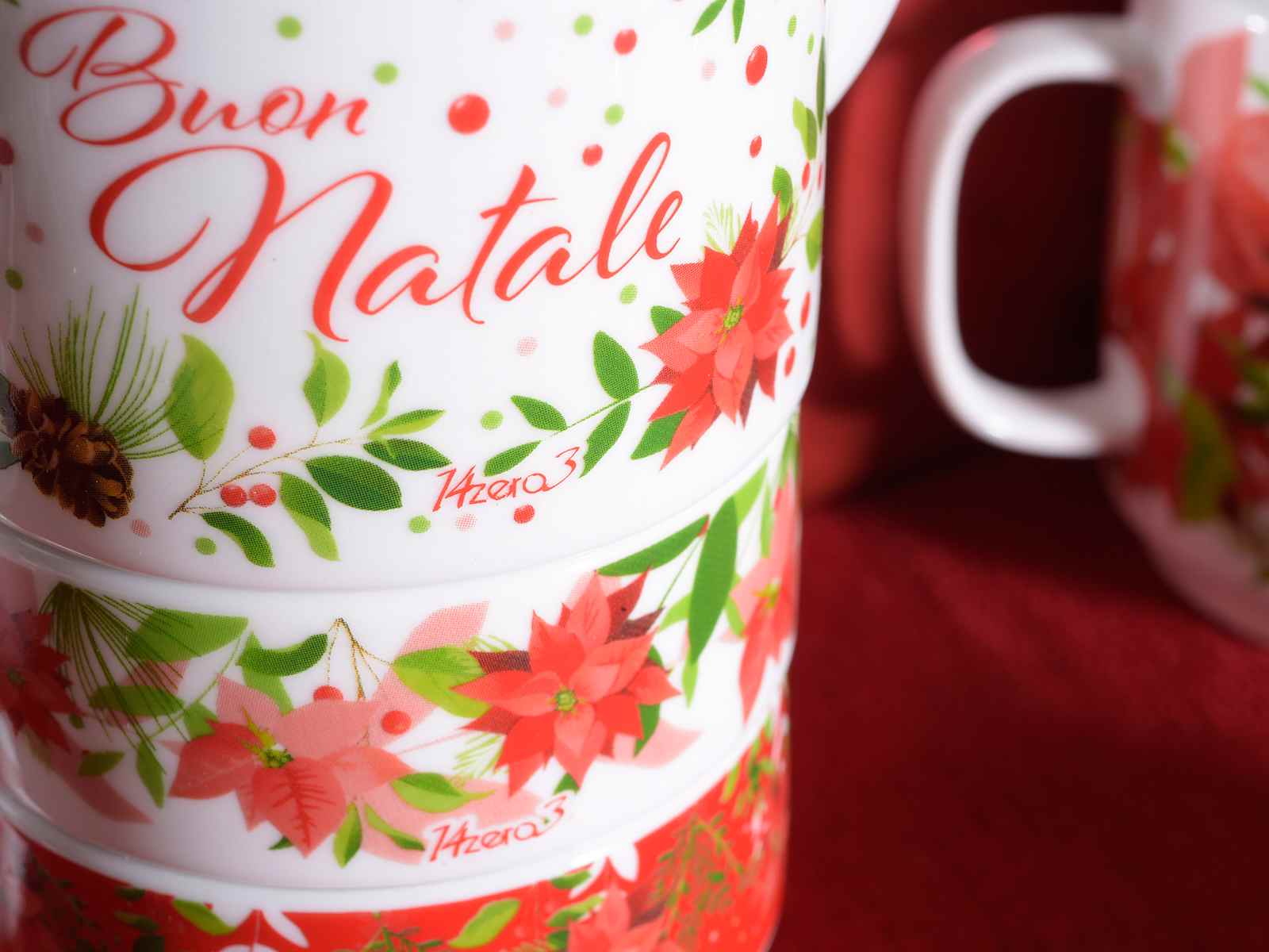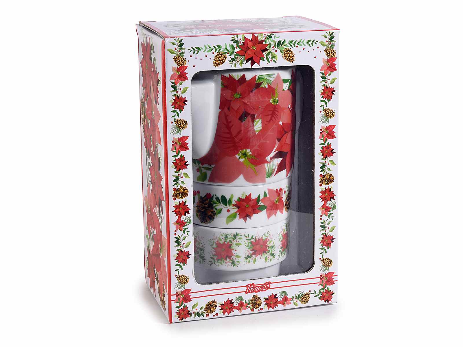 Juego de tazas de té de porcelana con adornos de estrellas navideñas en caja de regalo.