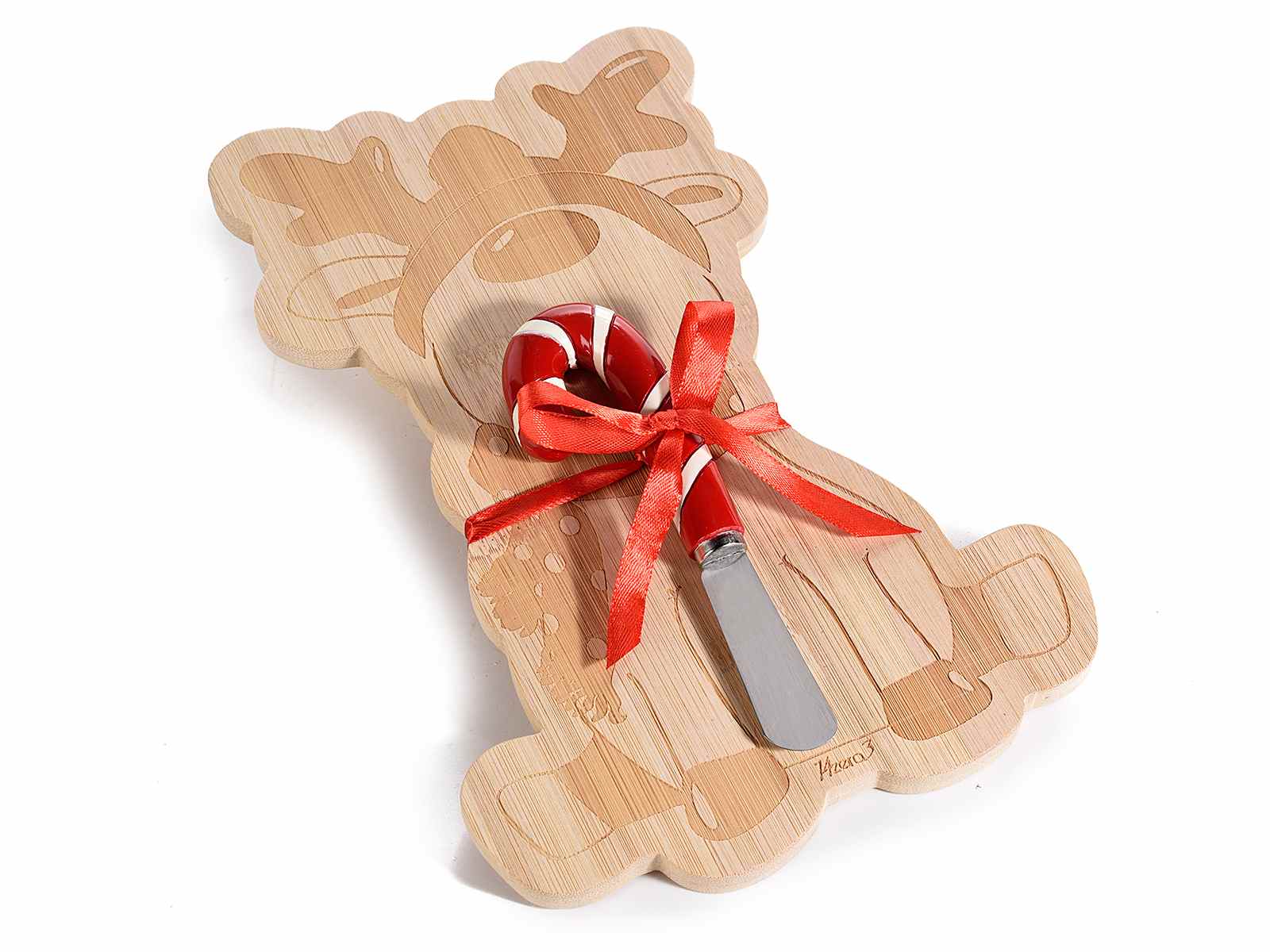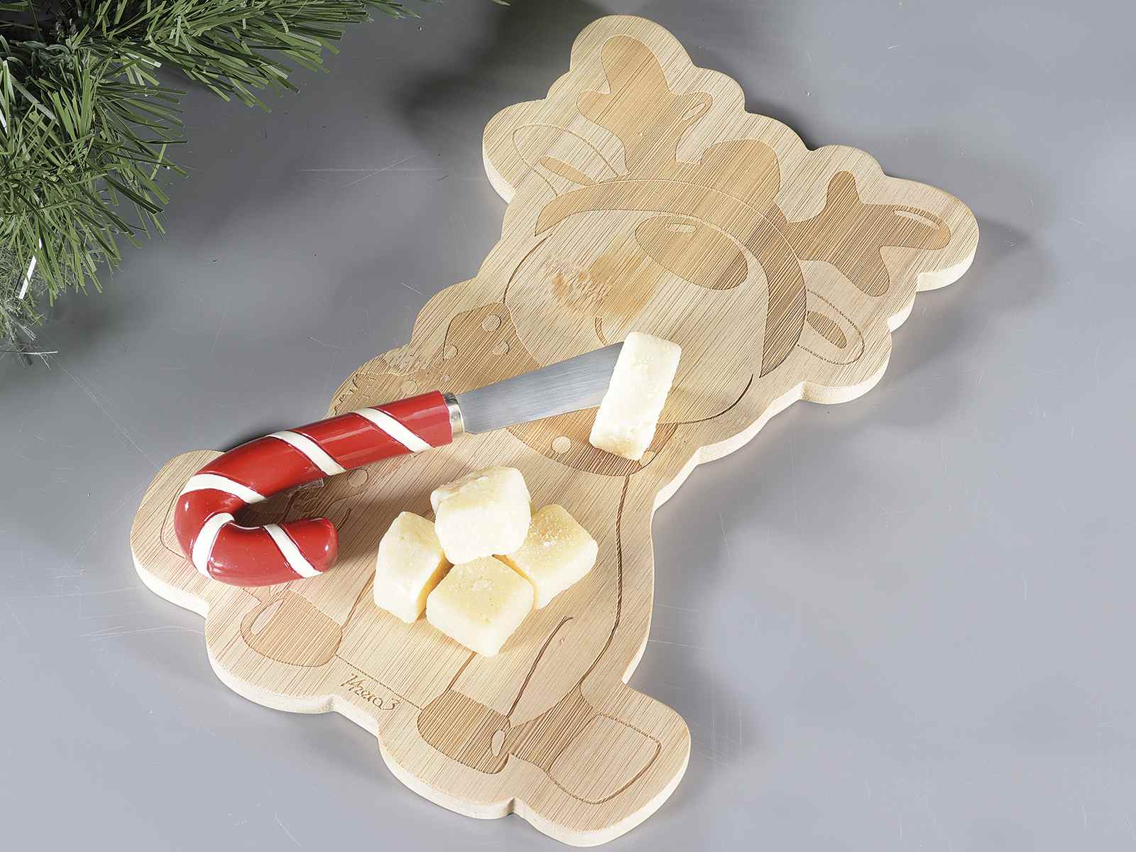 Juego tabla de cortar madera forma reno, cuchillo y lazo