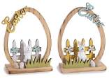Letras Pascua en madera de colores con un conejito de tela