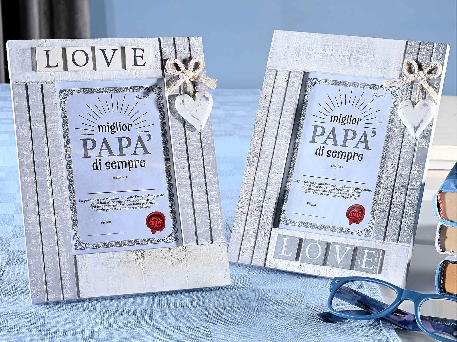 Luce foto: 9 x 14 H - Con card "Attestato miglior papà"