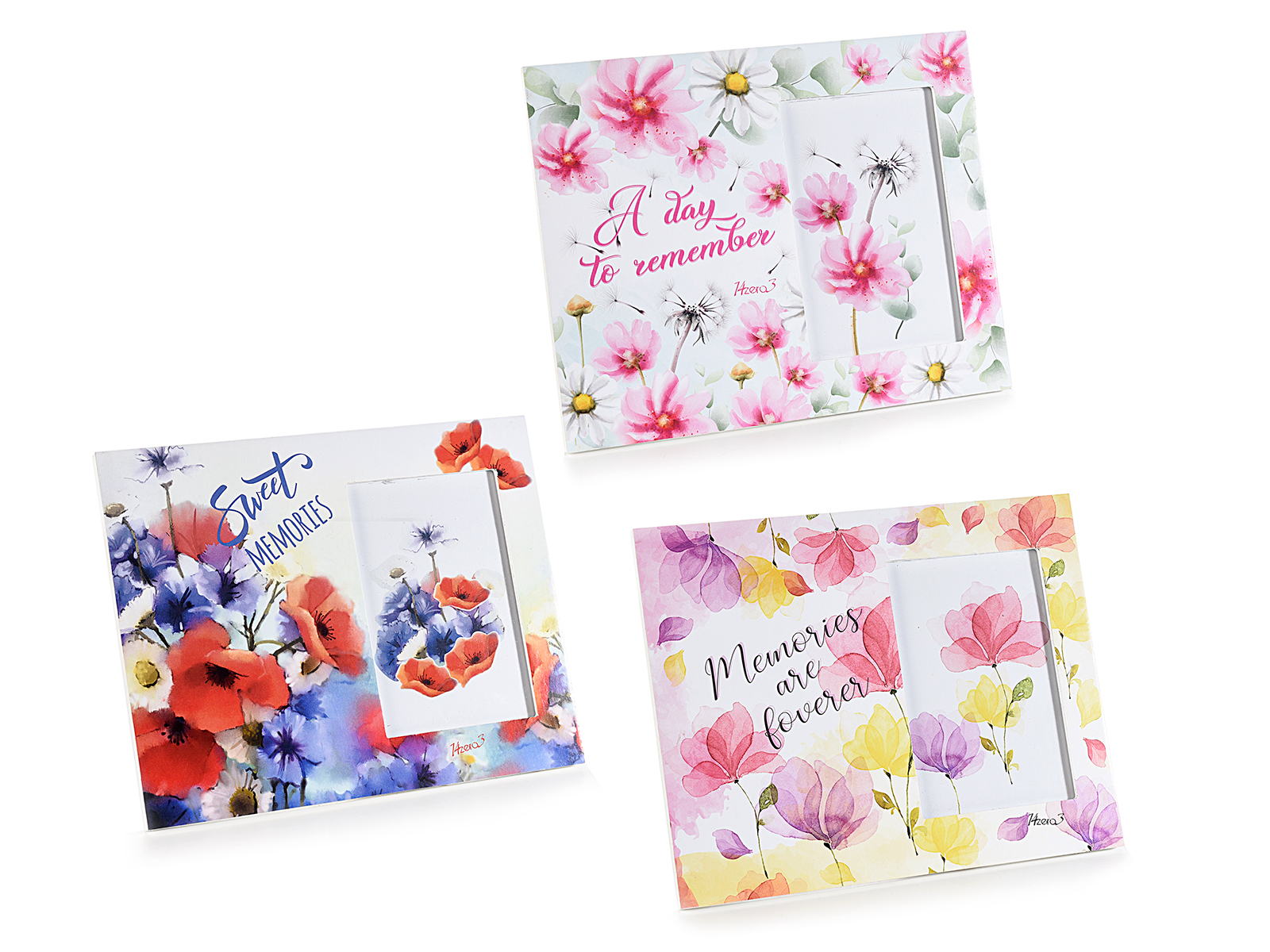 Portafotos de madera con adornos florales para colocar sobre la mesa