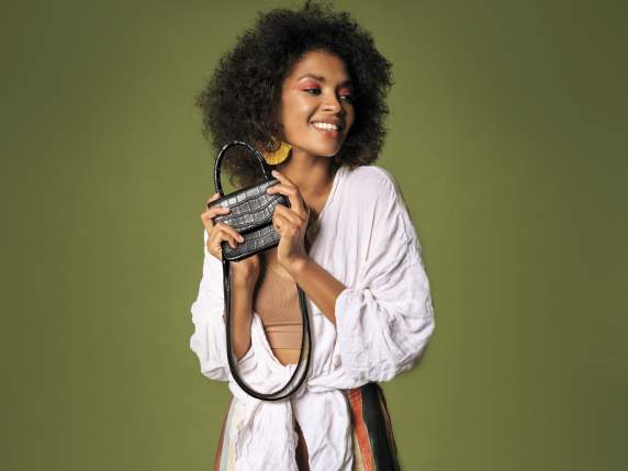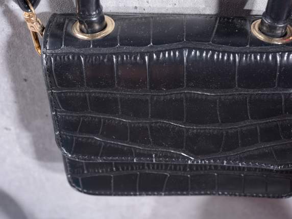 Minibolsos de mujer en polipiel efecto cocodrilo negro con asa y bandolera