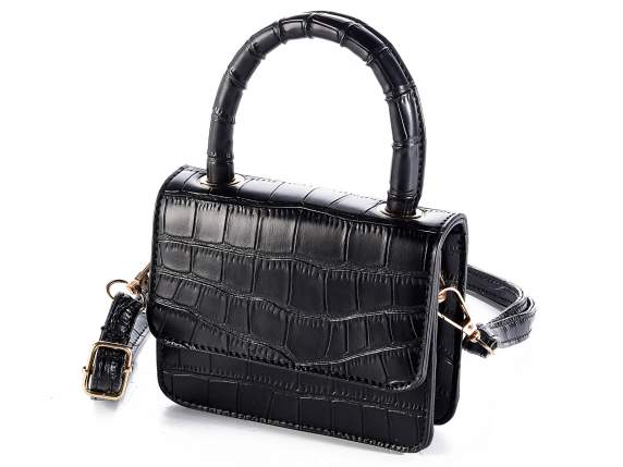 Mini bolso de mano en piel sintética negra efecto cocodrilo