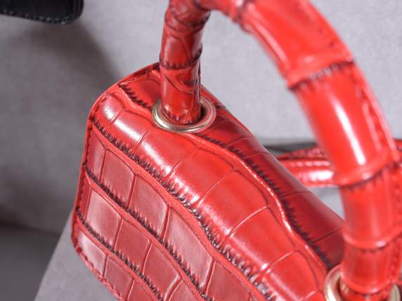 Minibolso de mano para mujer en polipiel rojo escarlata efecto cocodrilo con asa y bandolera