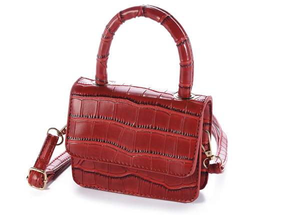Mini bolso de mano en piel sintética roja efecto cocodrilo