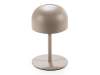 Minilámpara de metal blanco con luz LED. Se enciende con un toque y se recarga mediante cable USB. Ofrece una duración de batería de 9 a 10 horas. Cuenta con tres niveles de intensidad ajustables con un toque.