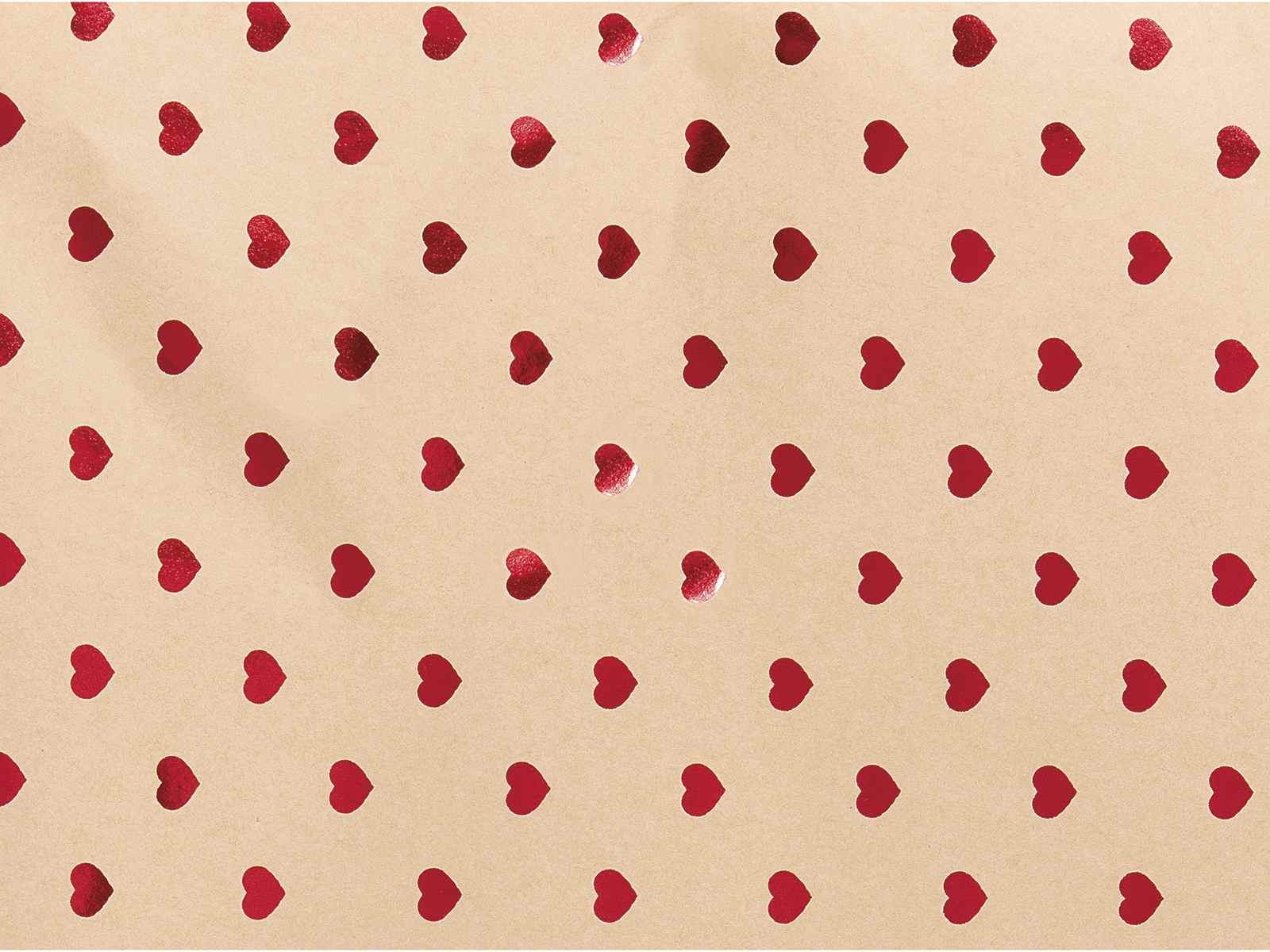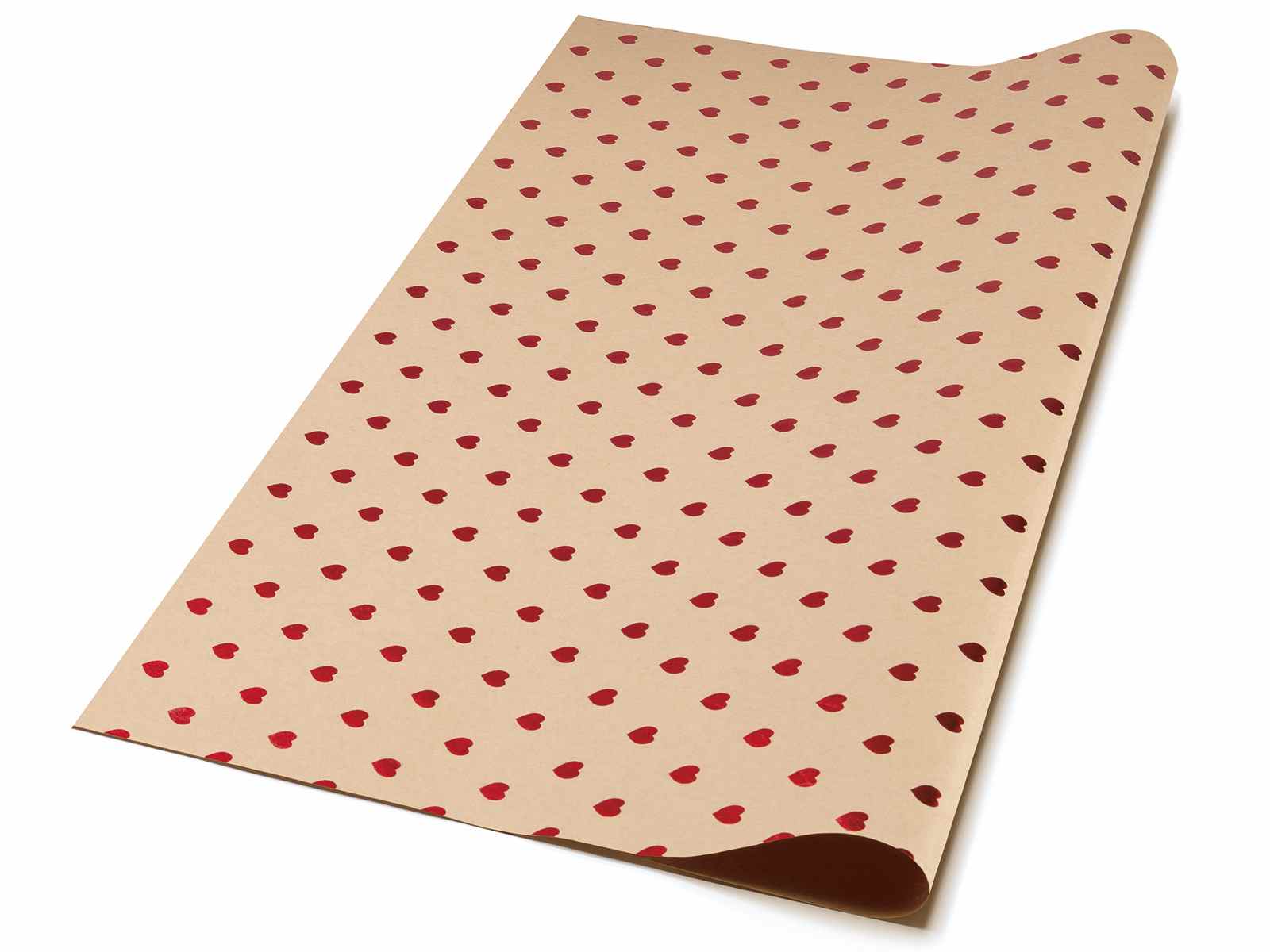 Papel de regalo apto para alimentos con corazones kraft metálicos rojos en un paquete de 20, perfecto para envolver regalos para Navidad, San Valentín y el Día de la Madre.