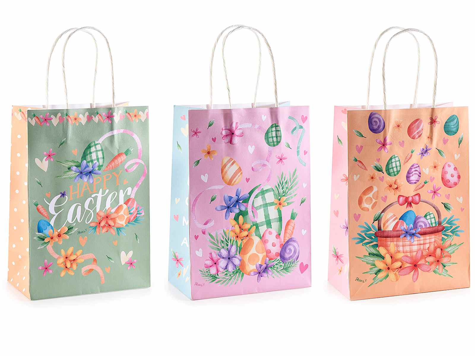 Pequeñas bolsas de papel/sobres/bolsas de compras con estampado de Pascua y texto "Feliz Pascua"