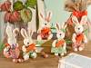 Porta caramelos de tela con forma de conejito de Pascua con vestidos a cuadros de colores, zanahorias y cremalleras colgantes