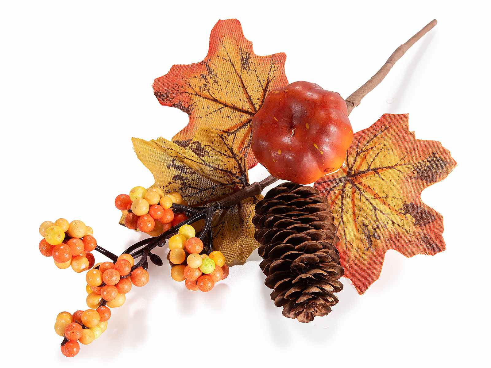 Ramitas de otoño para envolver y decorar con calabaza, piña, hojas y bayas artificiales.