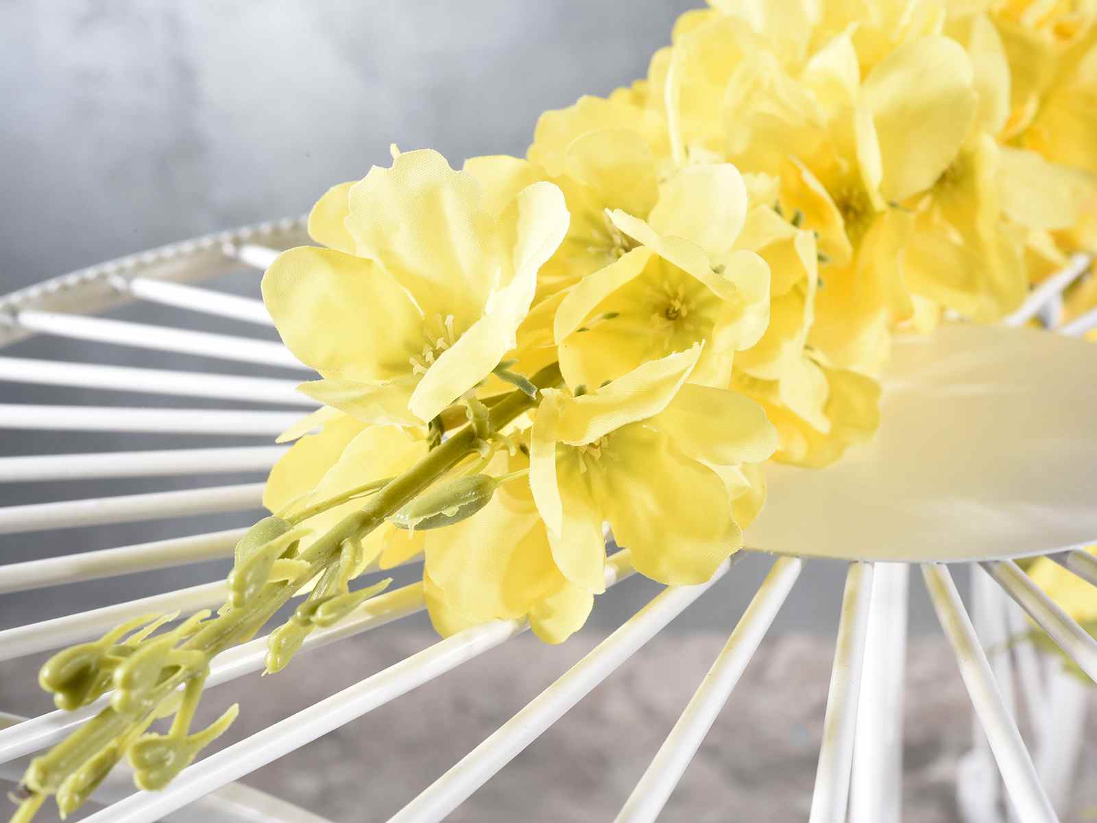 Ramas de flores artificiales de delphinium de color morado y amarillo