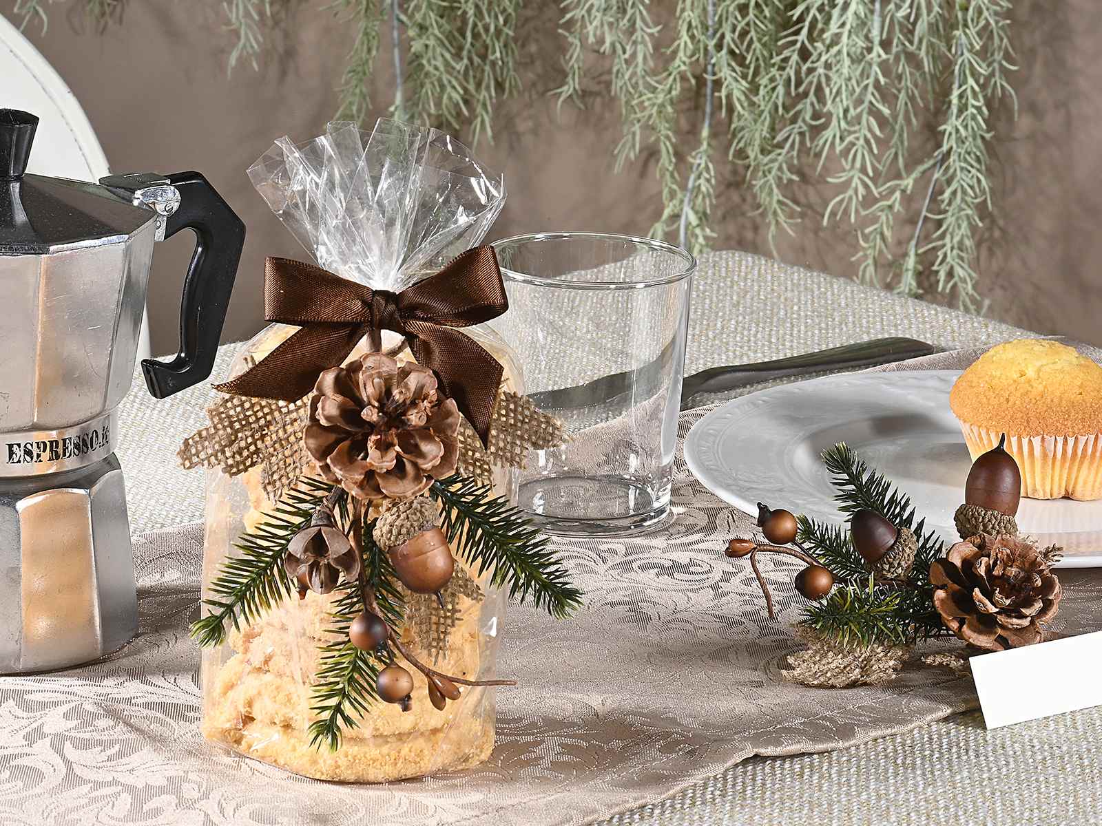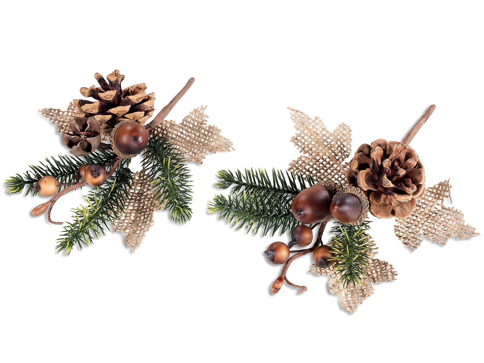 Ramo de bellotas, piñas artificiales y hojas de yute