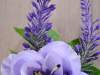 Púas de lavanda artificiales y anémonas moradas con hojas.