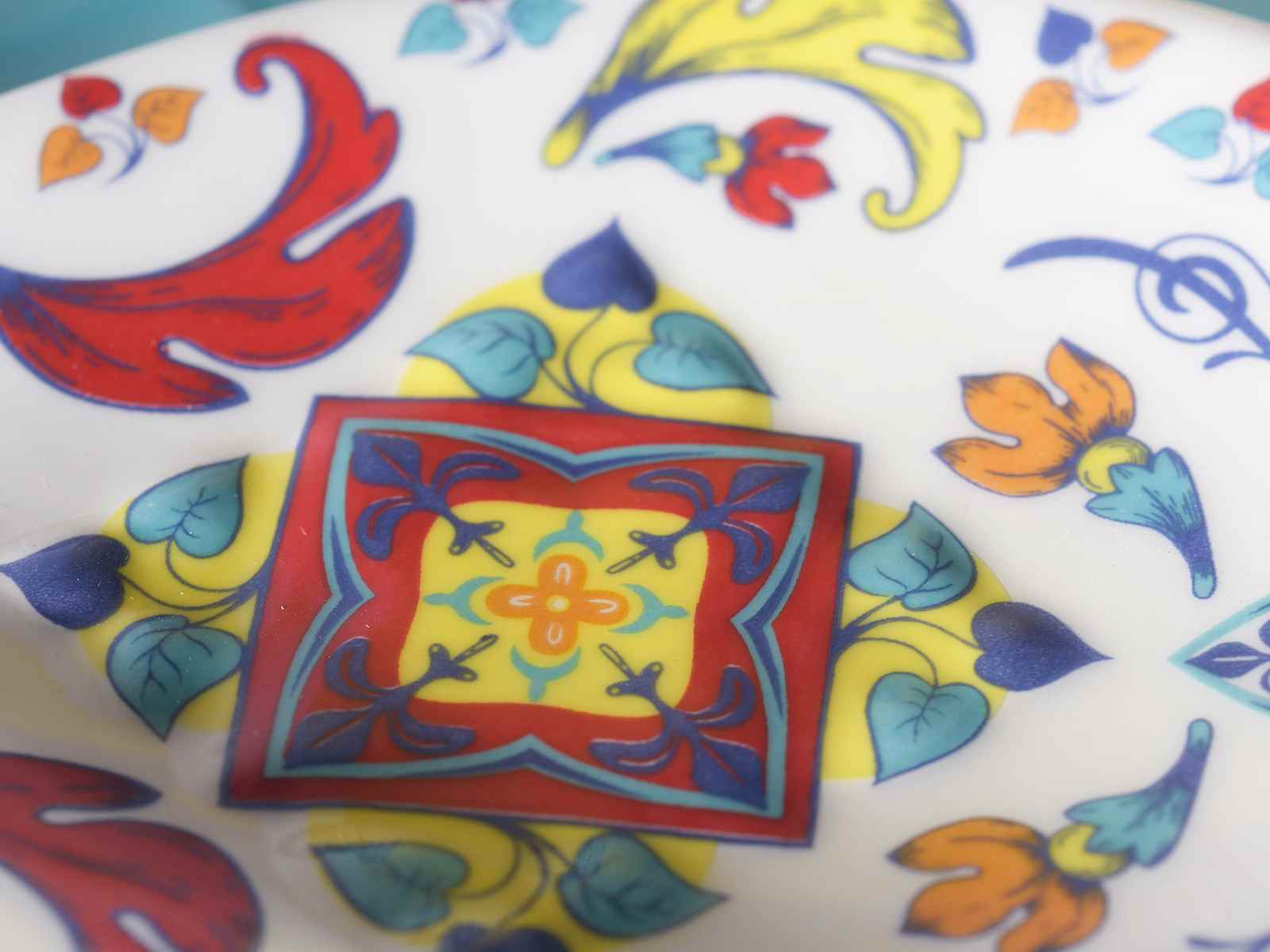Taza de porcelana de 300 ml con estampado de mayólica |