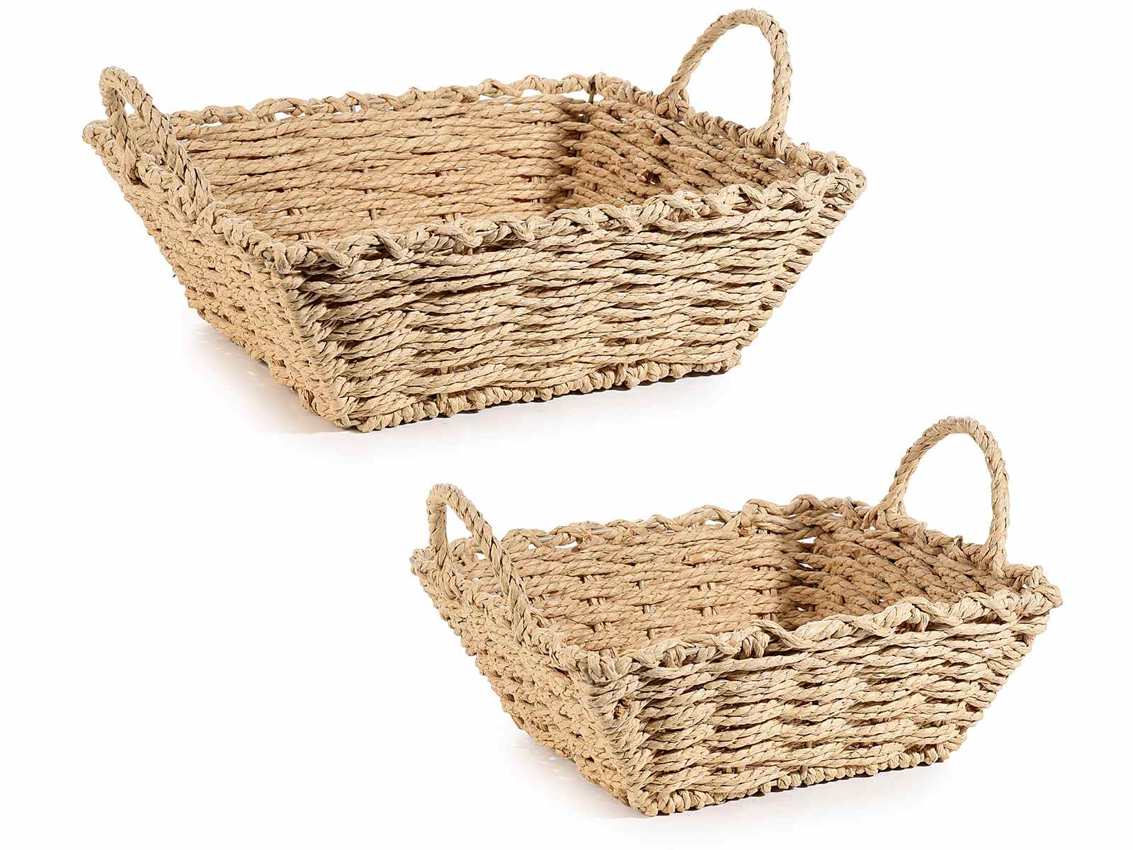 Cestas cuadradas de fibra tejida con asas en juego de dos piezas