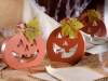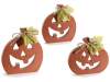 Calabazas decorativas de Halloween en madera tallada con hoja y lazo en set de 3 piezas