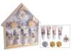Set de regalo navideño para el hogar con 3 cremas de manos, 2 cremas para pies, 2 bombas de baño y 1 adorno de madera.