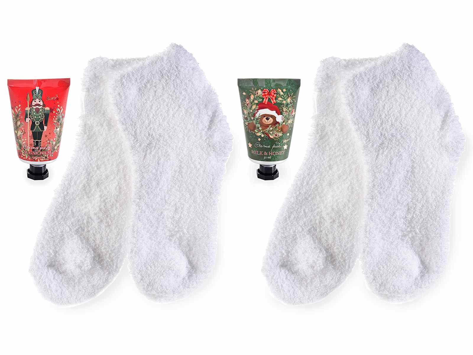 Crema para pies y calcetines navideños en una caja de regalo de 50 ml con diseño de Cascanueces y Osito de Peluche