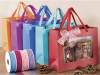 Sobres, bolsas de compra, bolsas de papel de colores con ventana transparente y asas de tela