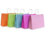Bolsas, bolsas medianas / shoppers horizontales en papel kraft natural reciclado con asa retorcida