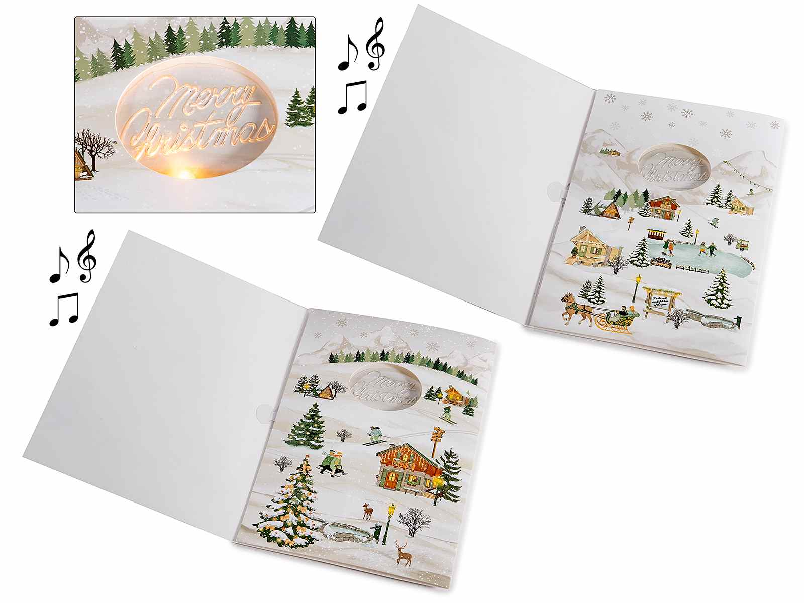 Juego 2 tazas porcelana 70 ml, diseño de pueblo nevado |