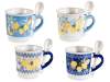Tazas de café de porcelana con cucharas con decoraciones cítricas y mayólicas.