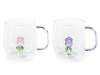 Tazas de vidrio transparente con rosa 3D y asa de color