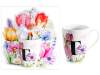 Taza de porcelana de 300 ml con estampado floral y letra T