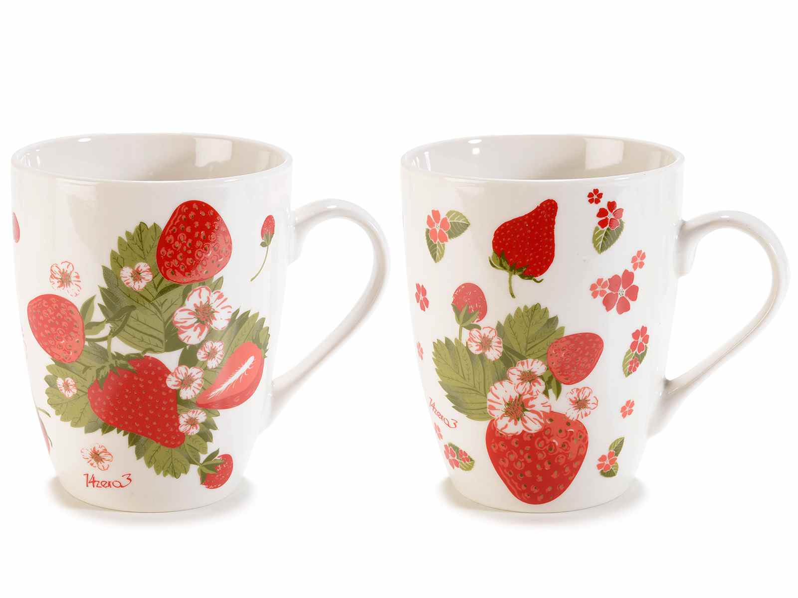 Tazas de porcelana con decoración de fresas