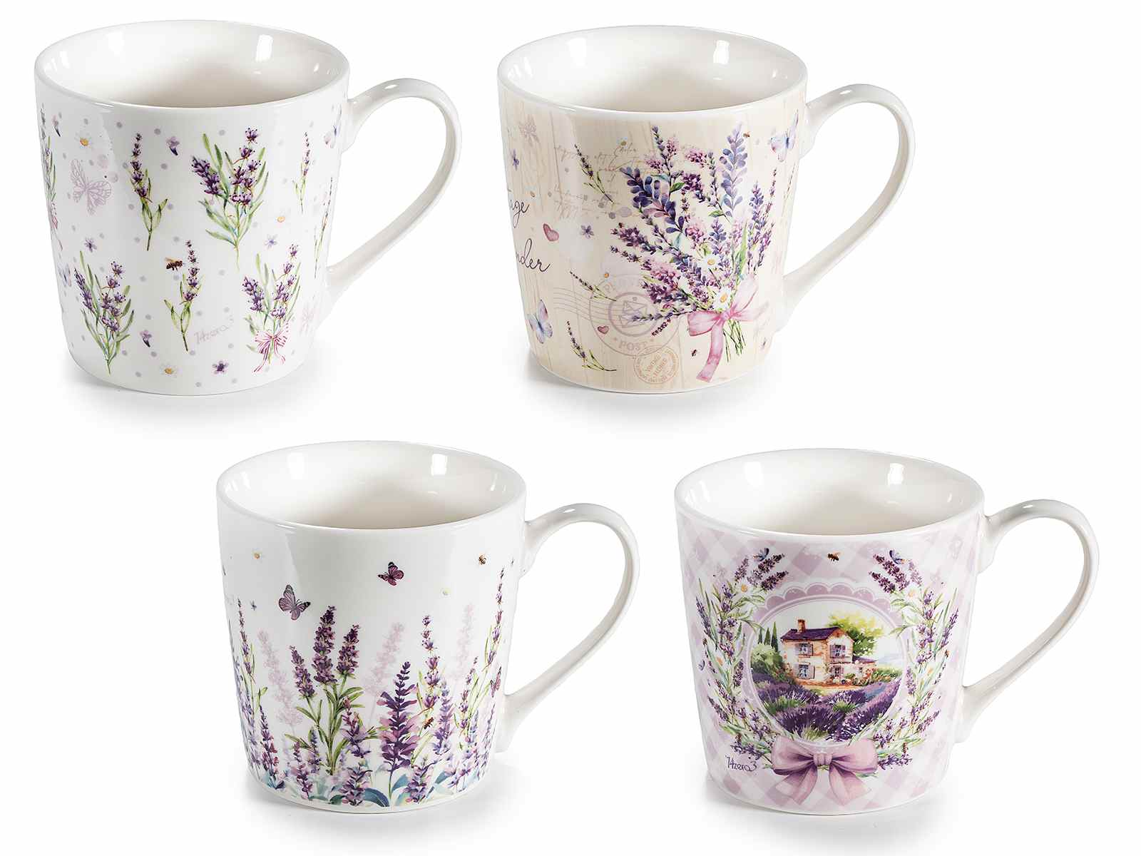 Taza de porcelana de 300 ml con decoraciones de lavanda. |