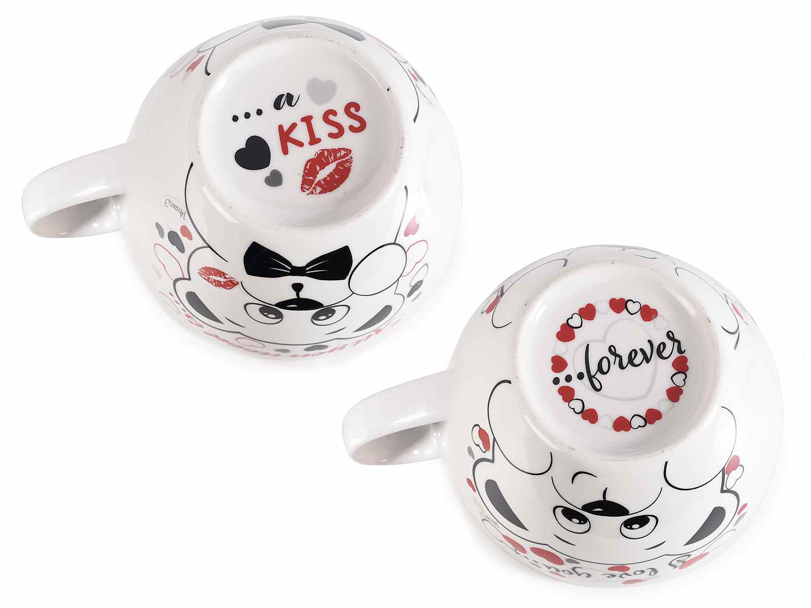 Tazas de porcelana para San Valentín con estampado de osito, corazones y Te quiero / Todo lo que necesitas es escribir