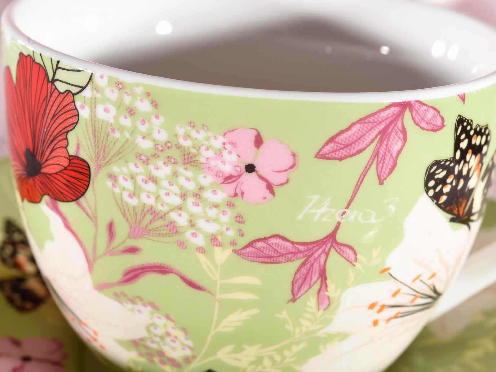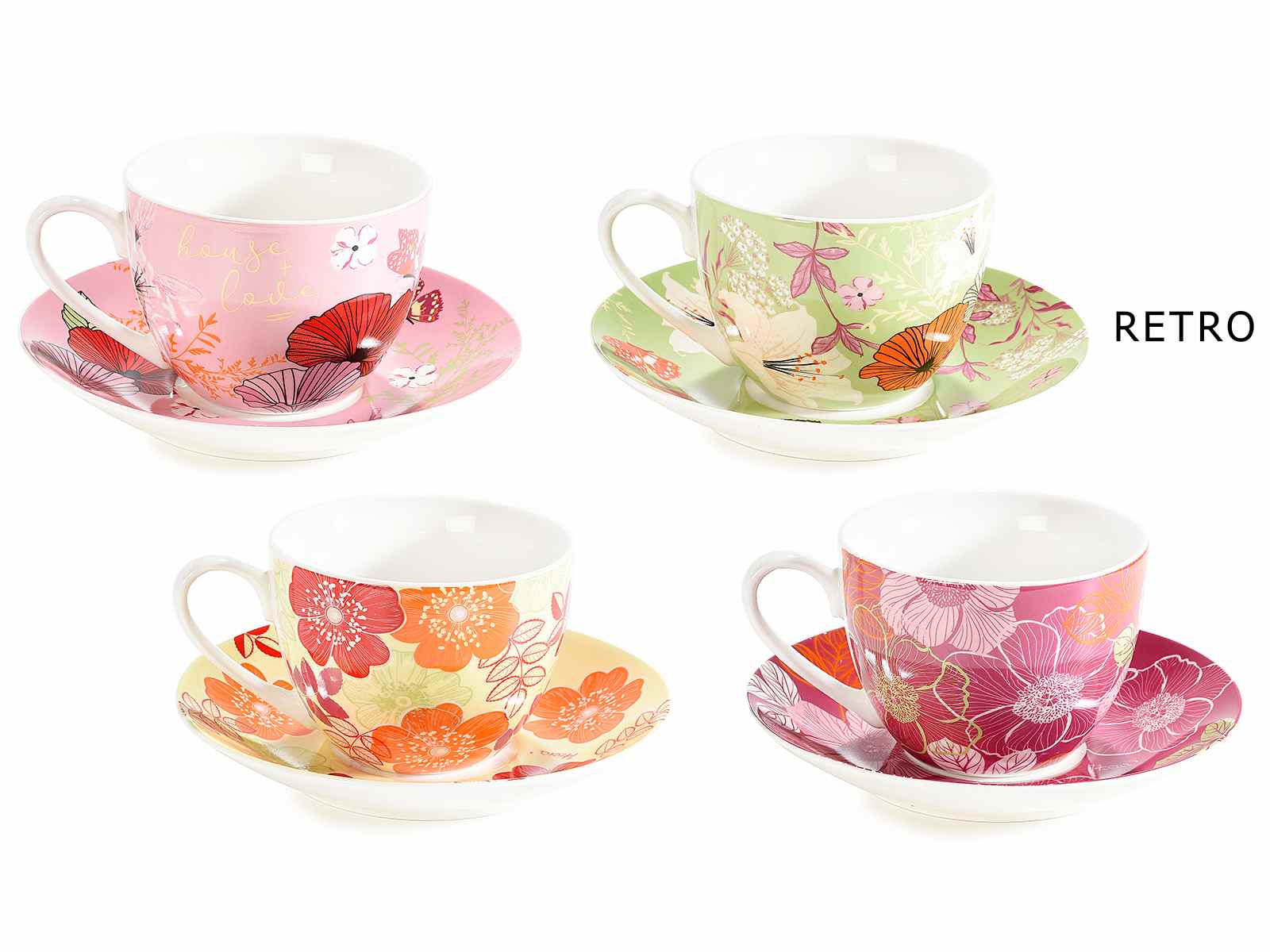 Taza de té de porcelana de 200 ml con platillo con decoració
