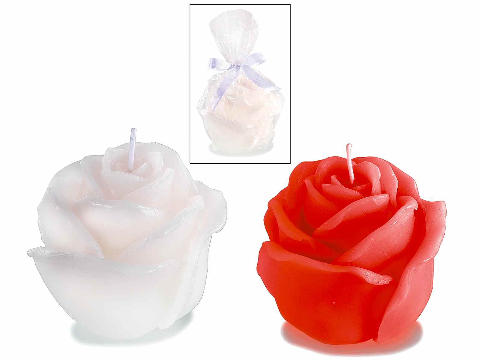 Paquete individual de velas con forma de capullo de rosa rojo y blanco con lazo para el Día de San Valentín y el Día de la Madre.